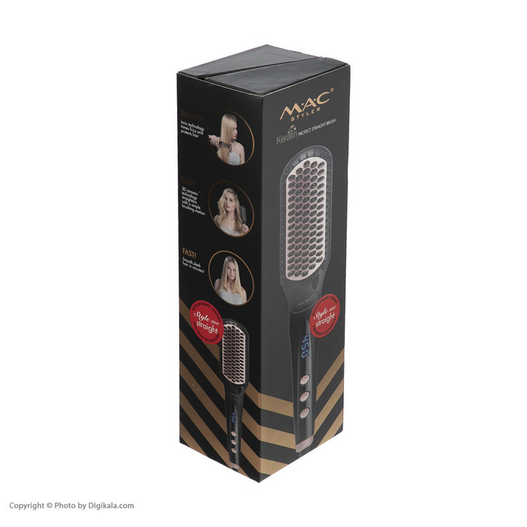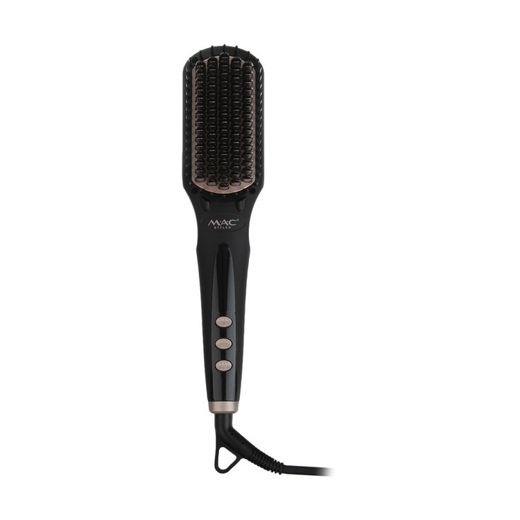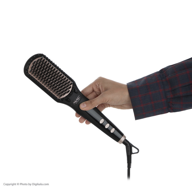 برای صافکردن موها میتوان از روشهای مختلفی مانند اتومو یا سشوار استفاده کرد. یکی از این روشهای نسبتا جدید برسهای حرارتی هستند. برس حرارتی مو مک استایلر مدل MC-19وسیلهای شبیه برس معمولی است؛ اما دارای دندانههایی است که داغ میشوند و موها را صاف میکنند. هنگام شانهکردن، موها از میان دندانهها عبور کرده و در تماس با سطح داغ قسمتهای سرامیکی صاف میشوند. سرامیک ضمن اینکه حرارت را به شکل یکنواخت پخش میکند، از موها محافظت بیشتری به عمل میآورد. صافکردن موها با برس حرارتی سریع و راحت است و کسانی که موهای بلند و متوسطی دارند، میتوانند از این روش برای صافکردن موهای خود استفاده کنند. از این برس می توان بعد از استحمام استفادهکرد. برس حرارتی مو مک استایلر مدل MC-19 دارای سیستم خاموشی خودکار بوده و قابلیت تنظیم دما دارد. گفتنی است مدت زمان گرم شدن این محصول بسیار کوتاه و تنها 30 ثانیه است. از ویژگیهای این محصول میتوان به قابلیت تولید یون، دارای سدیم با قابلیت چرخش 360 درجه و توان دستگاه برابر 50 ولت اشاره کرد.