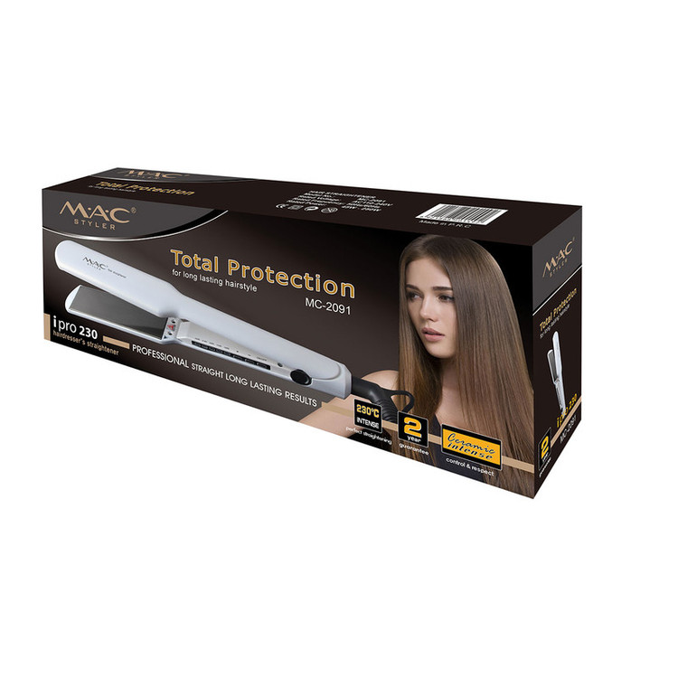 امروزه همه ی خانم ها برای زیبایی بیشتر پوست و موی خود به دنبال روش ها و وسایلی هستند که زیبایی آنها را دو چندان کند. از کرم ها و ماسک های صورت و مو گرفته تا دستگاه های آرایشی و بهداشتی. یکی از وسایل آرایشی مو که میتوان گفت در هر خانه ای حتما وجود دارد، اتوی مو میباشد. اتوی مو یا به اصطلاح صاف کننده مو در کمترین زمان موهای حالت دار و فر را به خوبی صاف میکند. اتوی مو بوسیله دو صفحه سرامیکی یا فلزی با استفاده از گرما موهای شما را بسیار لخت و صاف میکند. برای خرید یک اتوی موی خوب به جنس صفحه ( سرامیکی، کراتینی یا آلومینیومی)، عرض صفحات، شکل صفحه و درجه های حرارت توجه نمایید. اتوی مو مک استایلر مدل MC-2091 یکی از مدل های اتو مو با صفحات نانو سرامیک تیتانیوم با طراحی مدرن و خاص میباشد. این اتو توسط روکش نانو به درمان و درخشندگی مو کمک میکند. سیستم گرمایشی بسیار سریع اتوی موی مک استایلر در کوتاهترین زمان، دستگاه را آماده به کار میکند. از دیگر ویژگی های این اتو مو میتوان به قفل دستگاه، سیم گردان 360 درجه برای استفاده راحت تر و جلوگیری از پیچ خوردن سیم اشاره کرد.